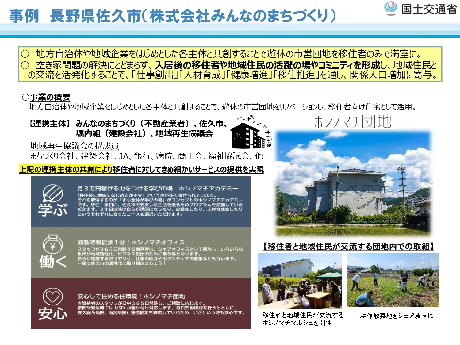 HOME > NEWS > NEWS 国土交通省より令和7年度 PPP/PFI 推進施策説明会にて紹介いただきました 2026年2月2日 2026年2月2日の令和7年度 PPP/PFI 推進施策説明会にて 不動産業者を始めとする多様なプレーヤーの連携による地域価値共創の推進をテーマとして、 国土交通省の不動産・建設経済局 不動産業課よりご紹介いただきました。 参照:紹介資料 Twitter Share Hatena LINE -NEWS